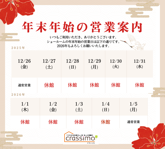 休業期間:2025年12月27日(土)~2026年1月4日(日)